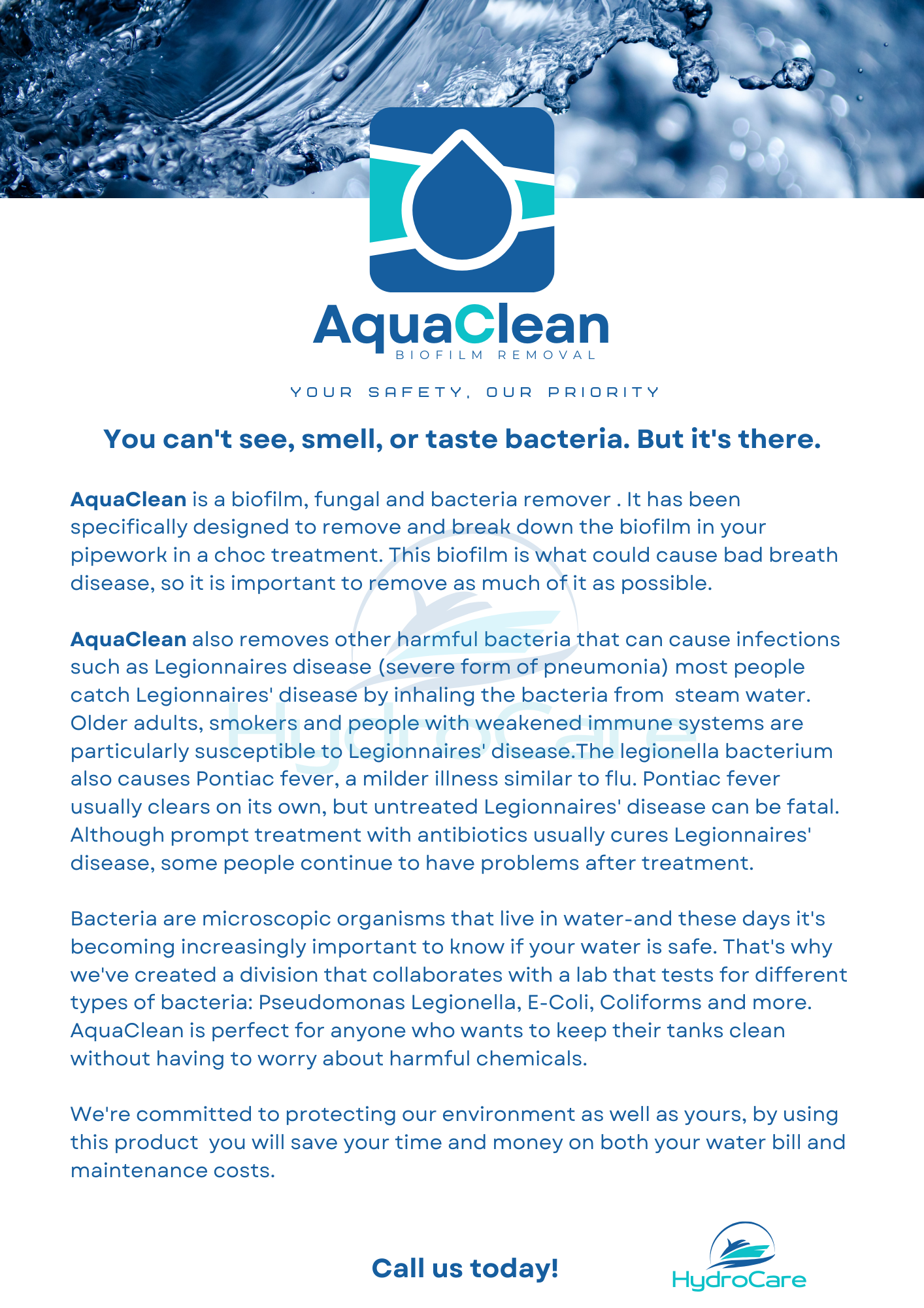 AquaClean is a biofilm, fungal and bacteria remover . It has been