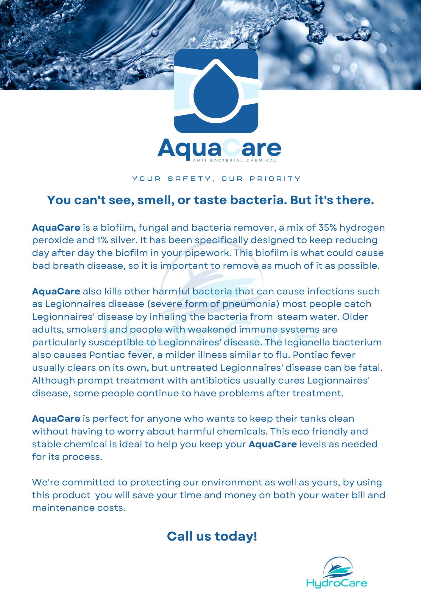 AquaCare is a biofilm, fungal and bacteria remover. It has been specifically designed to keep reducing